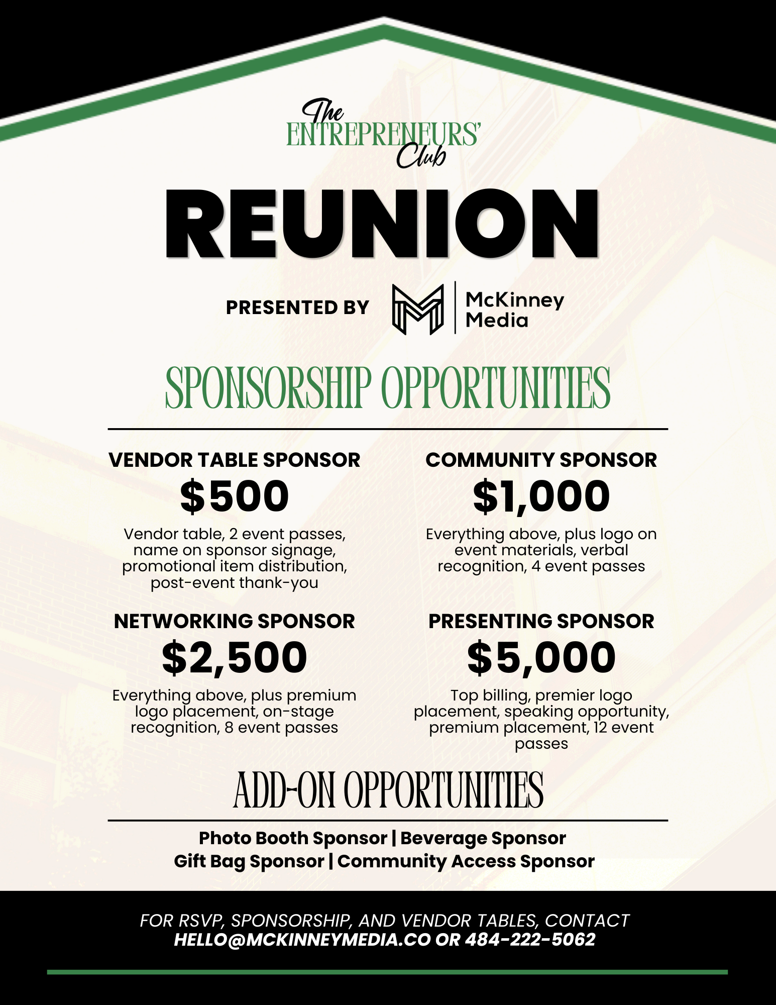 The Entrepreneurs Club is a department of McKinney Media focused on community engagement, connection, and impact. We bring together thousands of entrepreneurs, business professionals, and creatives through a diverse and growing Facebook community, host events and community givebacks, and extend the conversation through The Entrepreneurs Club Podcast. Through both The Entrepreneurs Club and McKinney Media, we create spaces and experiences that bring people together and strengthen the community.