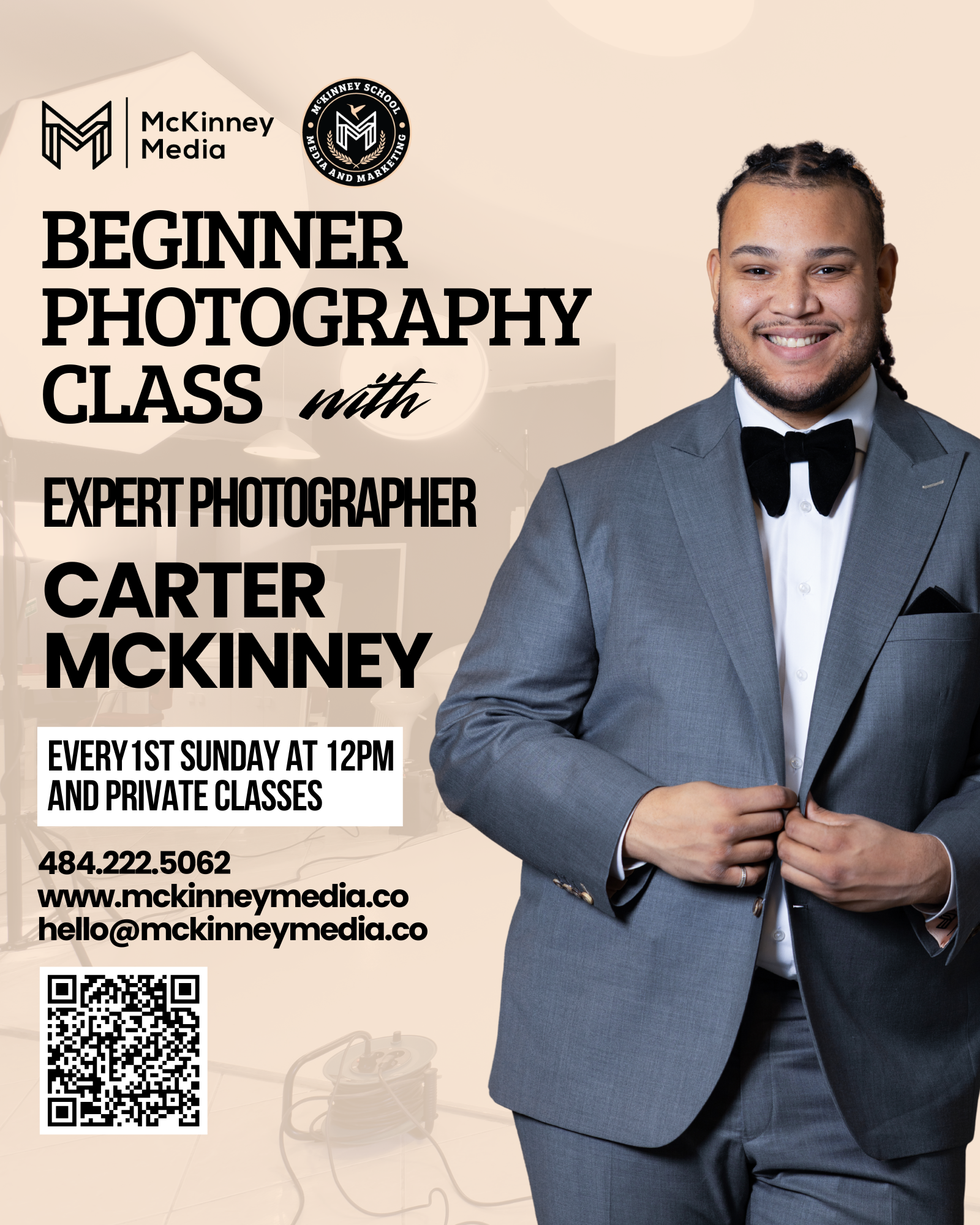 - 👩🏽💻 Internship Program – Real-world training inside McKinney Media’s live projects. Interns gain hands-on experience in photography, video, marketing, event production, and business systems. Includes portfolio-building assignments, mentorship from Carter and team, and career placement guidance.